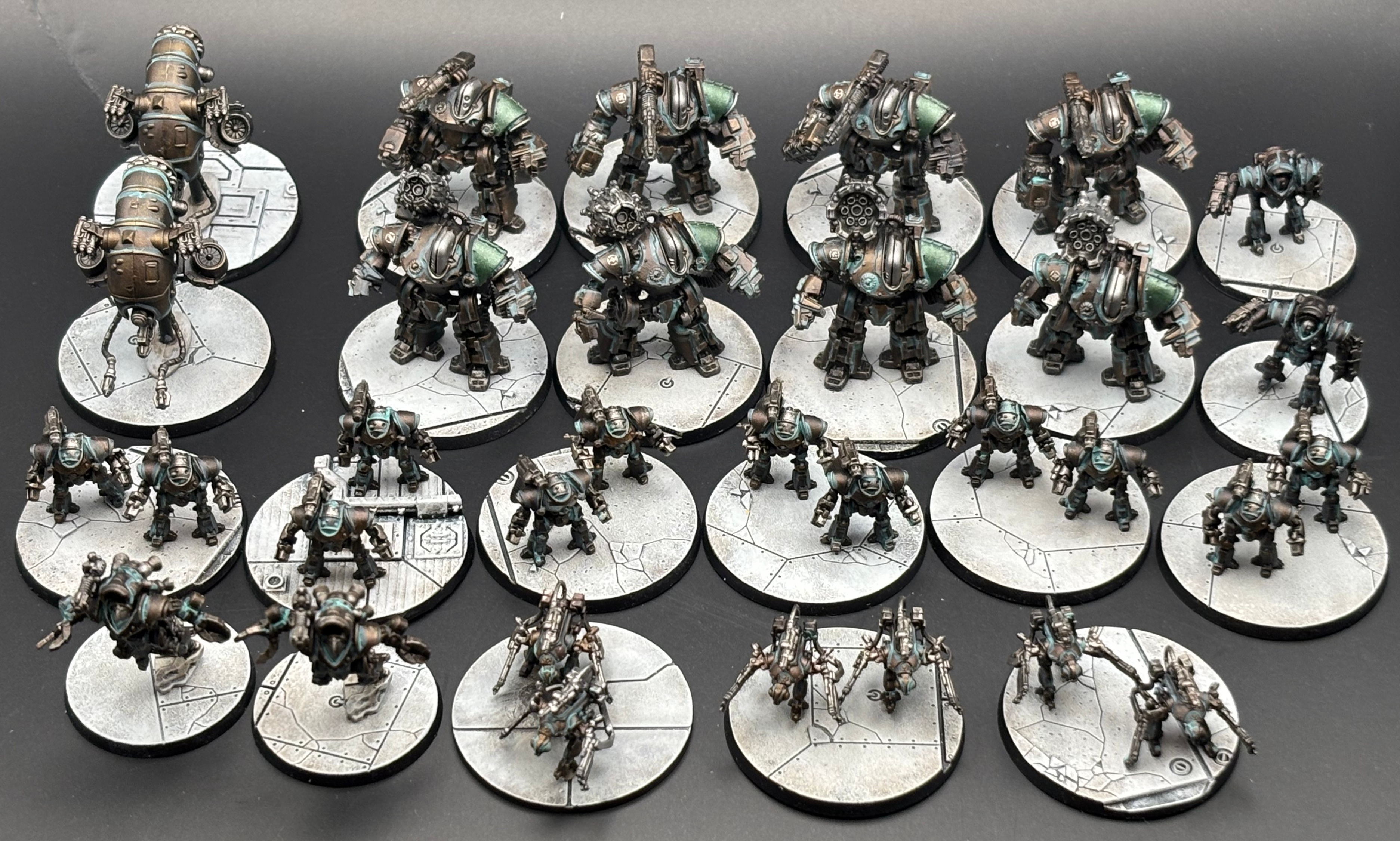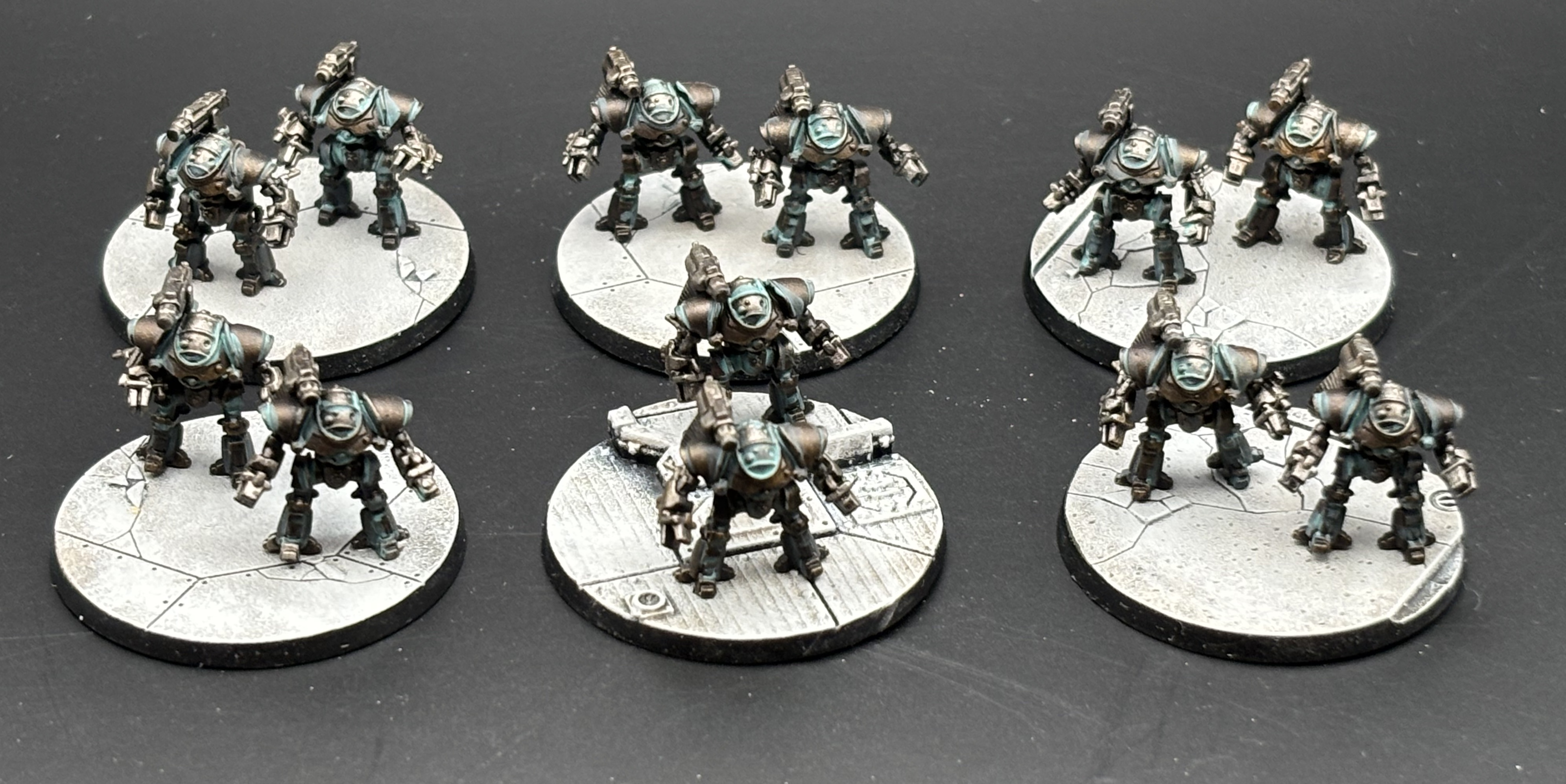 I have just finished the last base of battle automata for my Dark Mechanicum. I think it’s fair to say that these tiny, multi-part models are about as hard to build as it gets. But they look great!